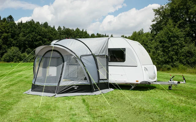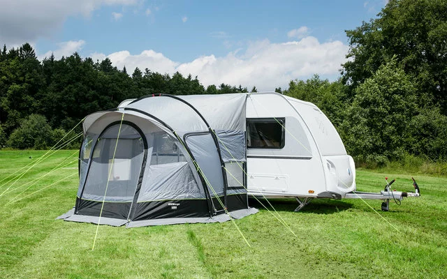 Wohnwagen-Teilvorzelt, ideal für Kurzreisen. Einfacher Aufbau durch Einzug in die Kederschiene. Kederläge 280 cm. Die Größe der Kederschiene beträgt Ø 7 mm.