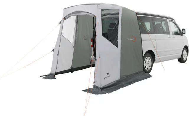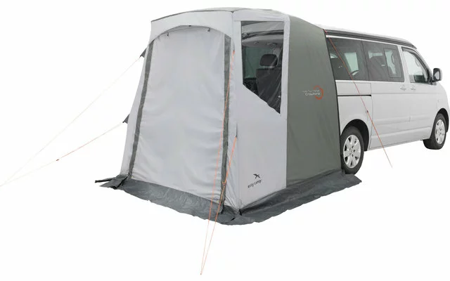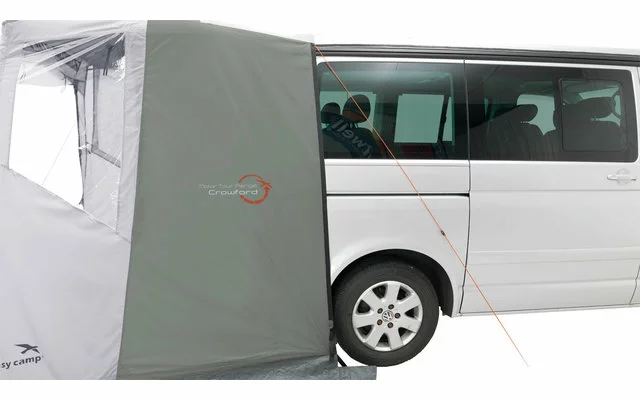 Die vielseitige Konstruktion des Heck-Vorzelts Easy Camp Crowford schafft flexibel nutzbaren Raum für VW-Bus Camper. Es ist die ideale Wahl für den VW T5 bzw. T6 California. Mit zwei Abspannleinen wird es sich sicher an der Heckklappe befestigt. Darüber hinaus verfügt es über eine Tür mit angenehmer Durchgangshöhe, die zum Schutz vor Sonne und Regen hochgeklappt werden kann. Entworfen für das Heck eines VW California T5/T6 Stahlstangen für das Vordach über der Vordertür enthalten. Verdeckte Lüftung auf der Vorderseite Fenster mit aufrollbaren Vorhängen an beiden Seiten. Ausgestattet mit Befestigungshaken mit Klappen zum Schutz der Kanten am Heck.
