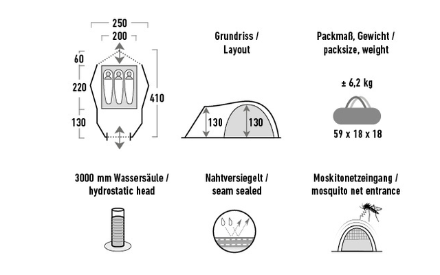- Extra großer Abstand zwischen Außenzelt u, Innenzelt