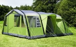 Das strapazierfähige, langlebige technische Baumwollgewebe reguliert das Innenklima und bietet eine echte Outdoor-Atmosphäre mit dem Komfort wie zu Hause in einem voll ausgestatteten, weiträumigen Design. Mit voller Stehhöhe, einem großzügigen Wohnraum für gemeinsames Essen und Entspannen und guten Belüftungsoptionen ist ein bequemes Campingleben garantiert.