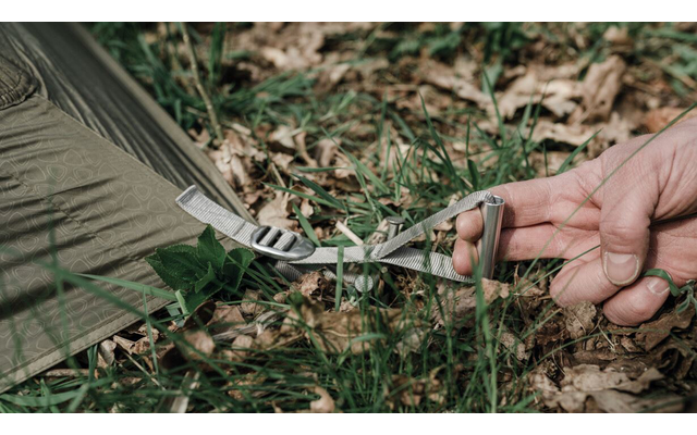 - Fixierung für die Abspannleine: Beim Zusammenpacken wird durch die Fixierungen sichergestellt, dass die Abspannleinen nicht durcheinander geraten oder verknoten.