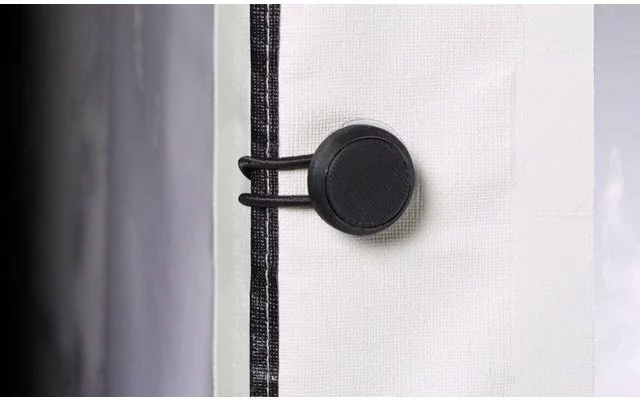- Alle Wände können aufgerollt und mit seitlich zu öffnenden Schnallen befestigt werden